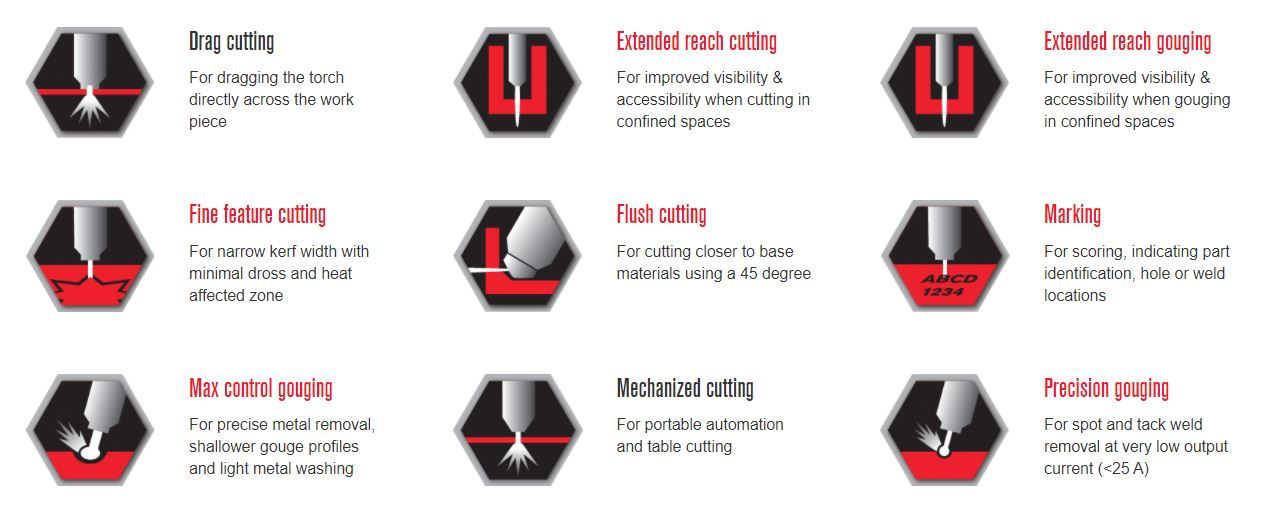 - Extensive range of specialty consumables for diverse cutting and gouging applications