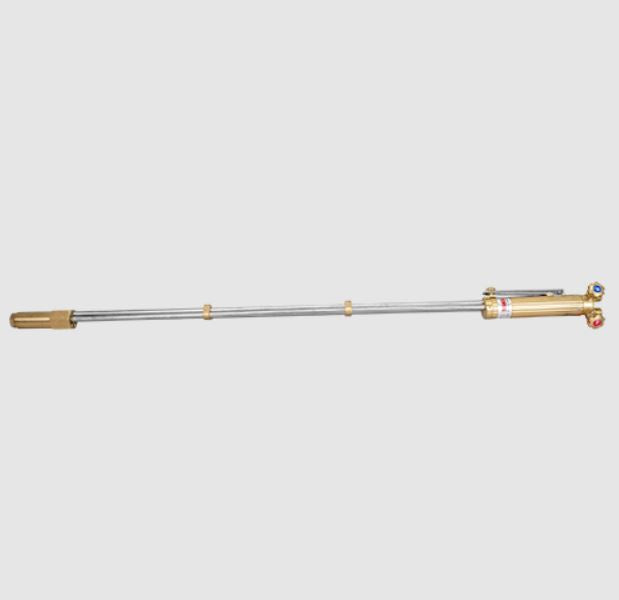 This cutting torch features a 180-degree angled design, enhancing accessibility and control in tight or awkward spaces. It is compatible with acetylene gas, providing a high-temperature flame suitable for cutting a variety of metals. The torch is engineered for durability and ease of use, making it a reliable tool for industrial and workshop environments.